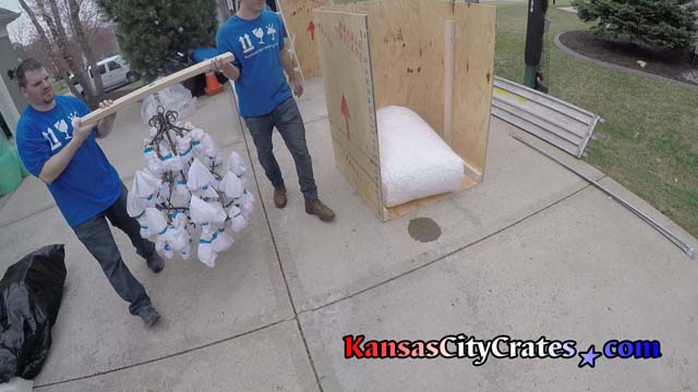 Chandeliers are expensive works of art with ornate craftsmanship and fragile arms that require crating before shipping. Our Chandelier Crates offer vault like protection by fully enclosing the lighting fixture. The Chandelier hangs from a suspension bar inside the crate that is filled with Foam Peanuts to isolate it during transport. All electrical work is performed by our on-staff licensed electrician. |
